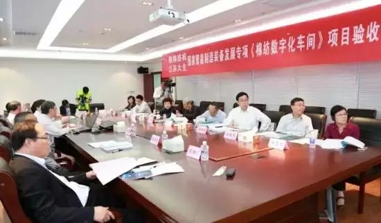 10月23日,受國家發改委、財政部、工信部的委托,以中國工程院院士姚穆、中國棉紡織行業協會會長朱北娜等九人組成的專家組,對國家智能制造裝備發展項目——“大生—經緯《棉紡數字化車間》”進行了驗收。